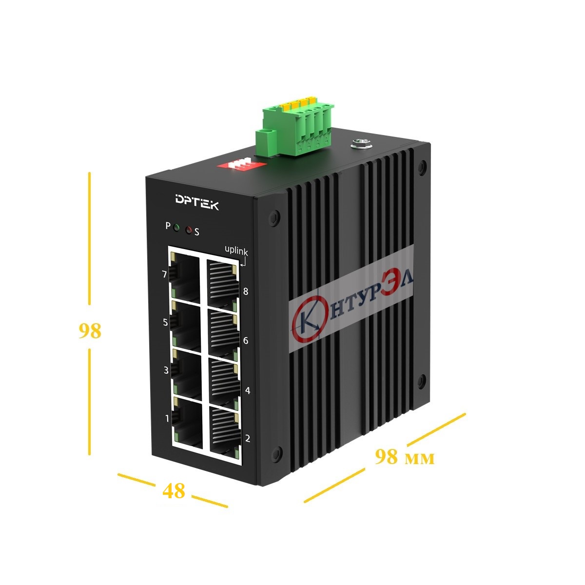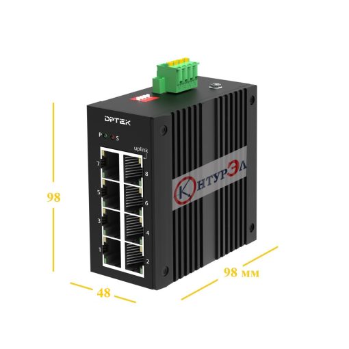 Компактный неуправляемый индустриальный коммутатор на 8 портов 10/100/1000T PoE+ (бюджет до 240Вт), в металлическом корпусе с защитой IP40, крепление на DIN-рейку в комплекте, питание 44-57V DC с возможностью подключения резервного источника питания, рабочая температура -40…+75°C, встроенная защита от обратной полярности, статического электричества, а также перенапряжения, удобный DIP-переключатель режимов, коммутатор соответствует требованиям стандартов CE / FCC / RoHS, а также IEC 60068 — свободное падение, вибрация.